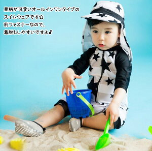 【送料無料 宅ゆ】ベビー キッズ 男の子 女の子 星柄モノトーンスイムウェア 水着 子ども オールインワン つなぎ 水泳 夏 海 プール スイミング 80 90 95 100 110 1歳 2歳 3歳 4歳 5歳 幼稚園 保育園 小学生 RSSW-K8 190704